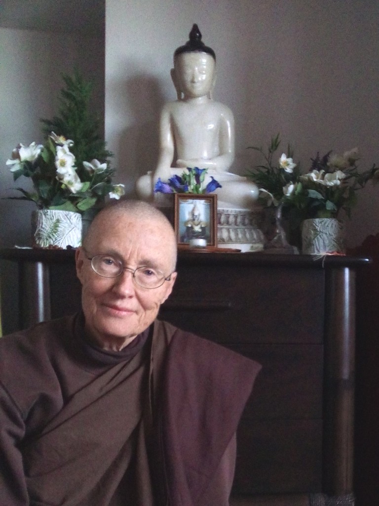 2. (Ayya Nandatheri): Tod und Wiedergeburt. Ayya Nandatheri wurde im Januar 2020 zur Buddhistischen Nonne in der Theravada Tradition in Myanmar (Silashin, Serley) ordiniert. Sie ist langjährig Praktizierende der Achtsamkeitsmeditation mit regelmäßigen Meditations-aufenthalte für Wochen / Monate in Asien. Seit 2003 ist sie MBSR - Lehrerin (Stress-bewältigung durch Achtsamkeit). Ihren Beruf übt sie als Fach-krankenschwester für Anästhesie und Intensivmedizin aus.